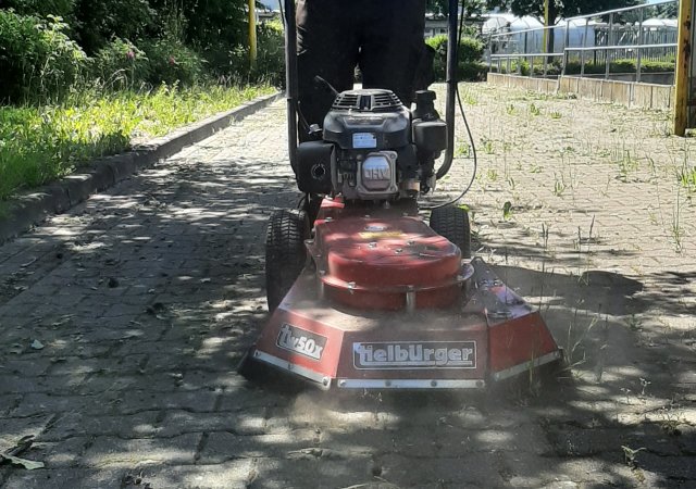 Mit dem Gerät ist die Spezielle umweltgerechte Unkrautbeseitigung an Bordsteinkanten und auf Pflasterflächen möglich. Die rotierenden Bürsten kommen in jeden Winkel und entfernen das Unkraut zuverlässig. Das Unkraut wird aus der Erde herausgezogen und an der Oberfläche abgelegt. Danach kann das Unkraut abgefegt werden. Die Anwendung ist nicht nur effektiv, sondern hinterlässt auch einen sauberen Eindruck, weil nichts auf der Oberfläche verbleibt.