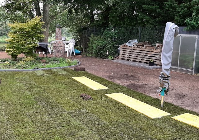 Nach der Verlegung des Rollrasens sollte man diesen ca 10 Tage lang nicht betreten und entsprechend den Wetterverhältnis 14 Tage lang ausreichend wässern, damit er gut anwachsen kann. Nach ca 14 weiteren Tagen kann der neue Rasen gemäht werden.