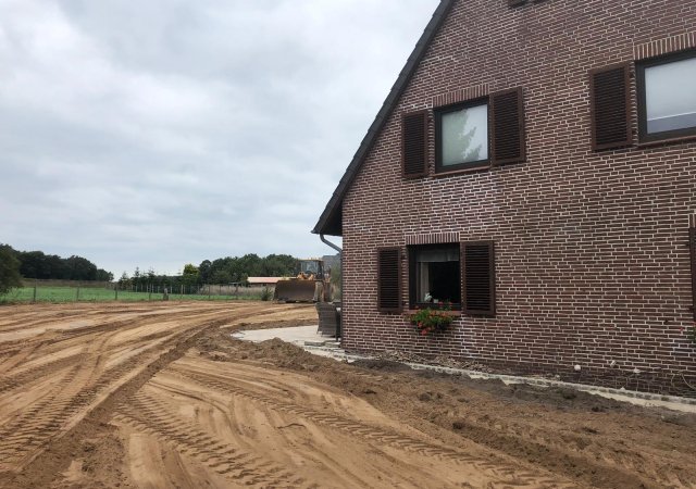 - Herstellen der Schotterfläche für das Haus, die Garage und die Terrasse